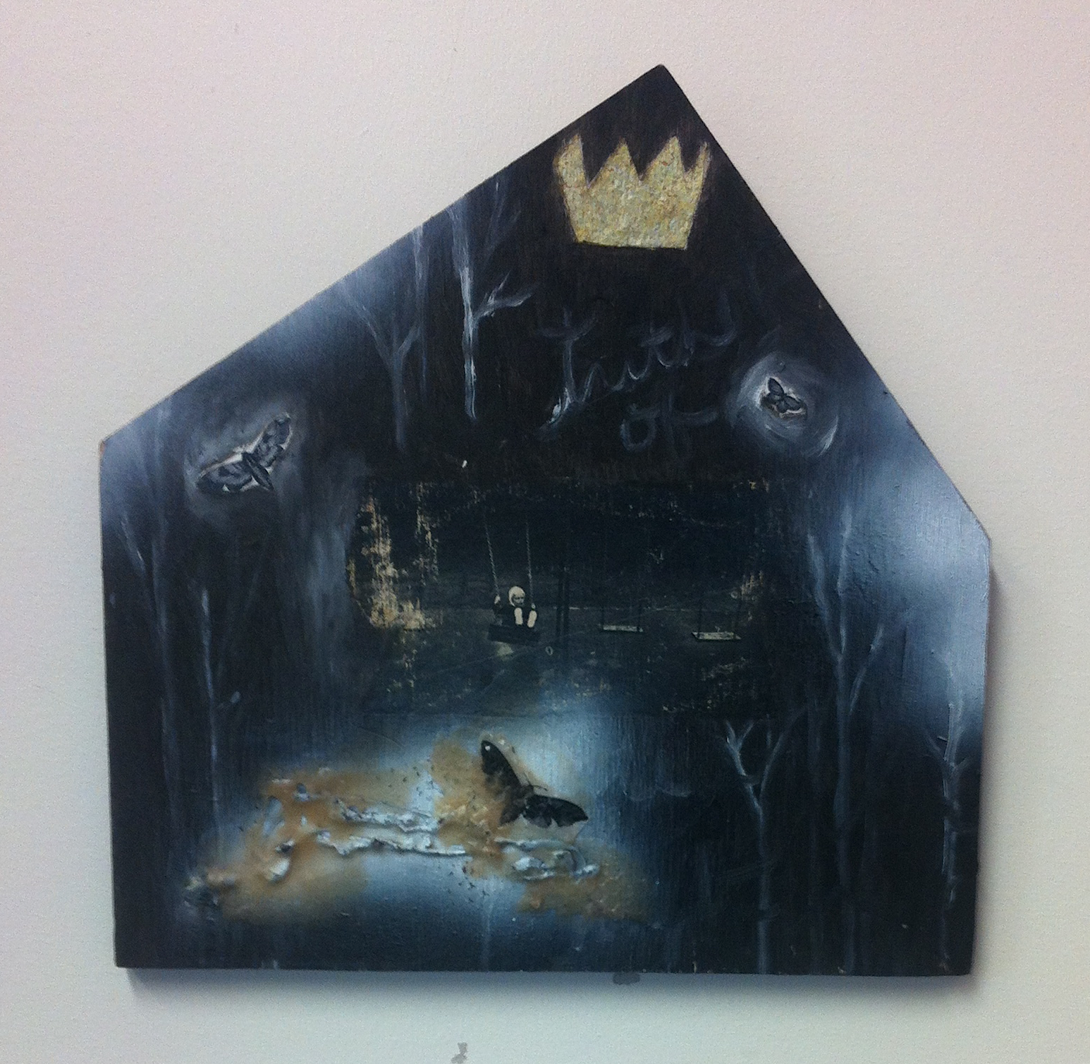 House shaped painting roughly 12"x12" on board, oils and mixed media. 2015