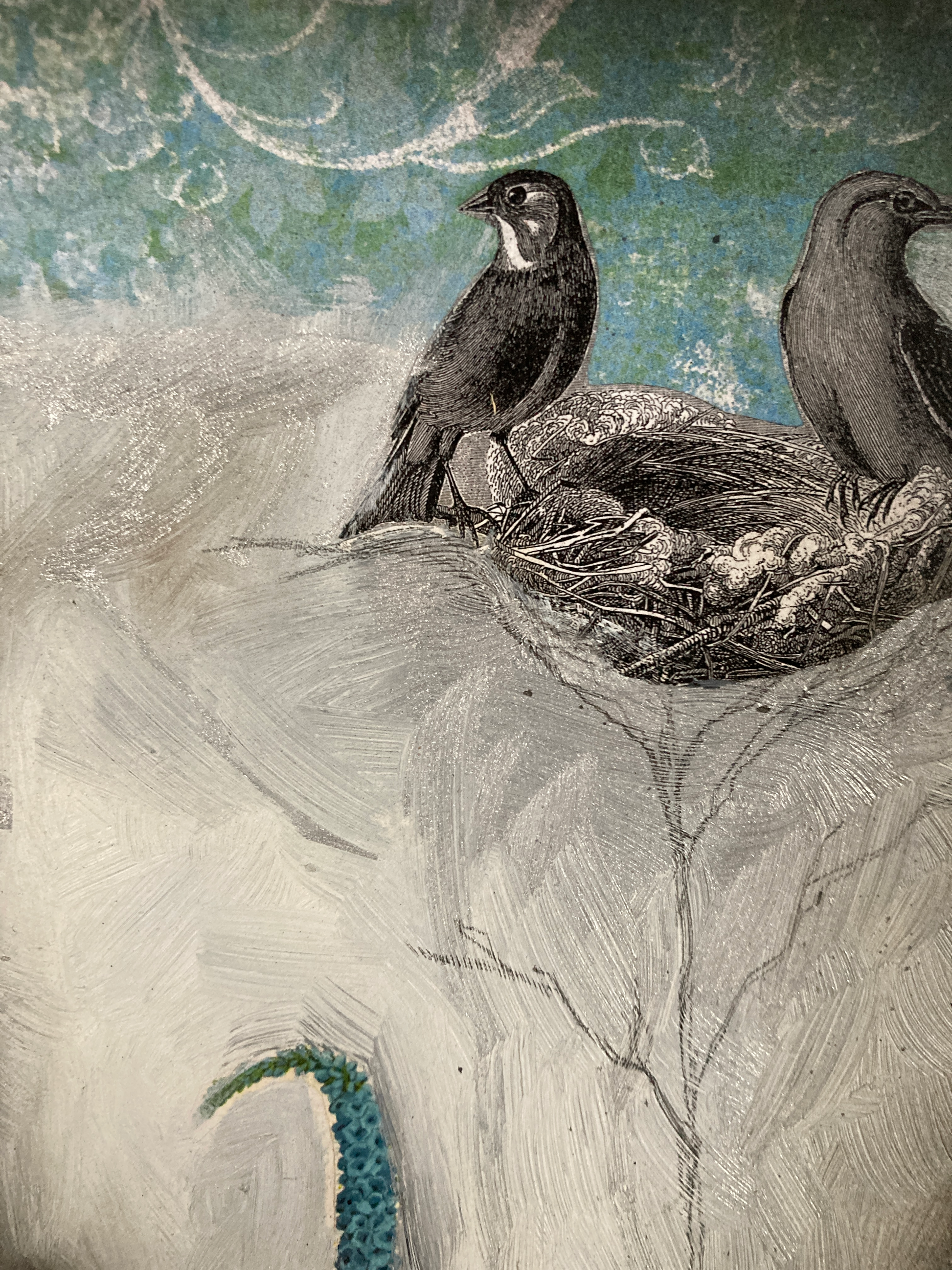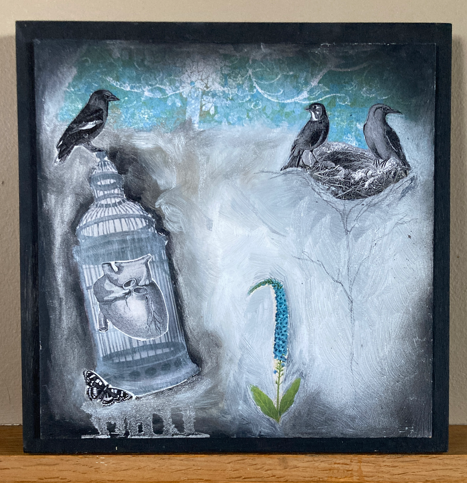 Mixed media oil painting on board, 10"x10" - mounted on cradled wood and wired for hanging. This is from a previous series, still magnificent and mysterious.