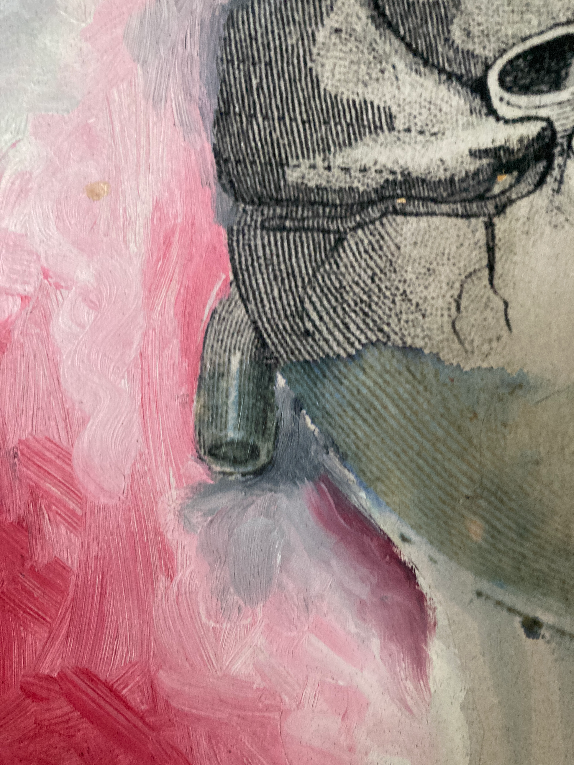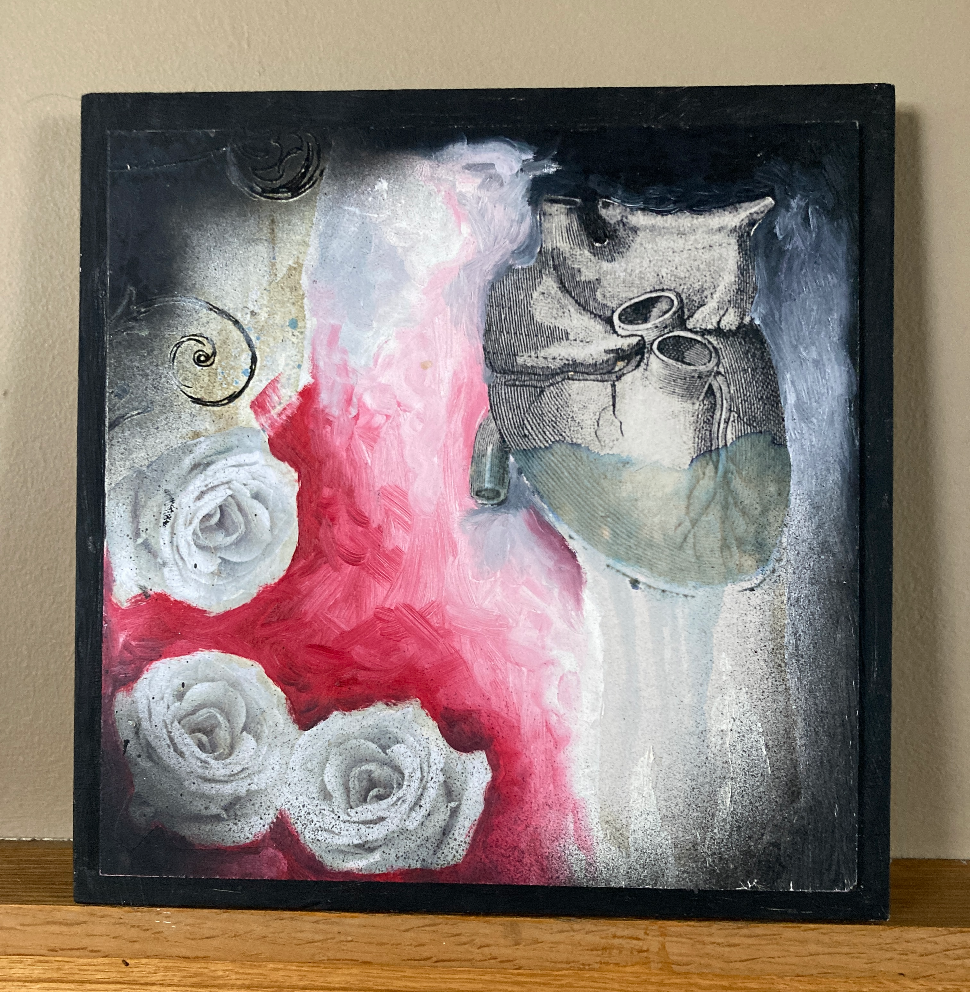 This beautiful painting is mixed media & oils on wood panel, mounted on cradled wood and wired to hang. It is from an older series, but still 10"x10" of moody, raw and ragged.